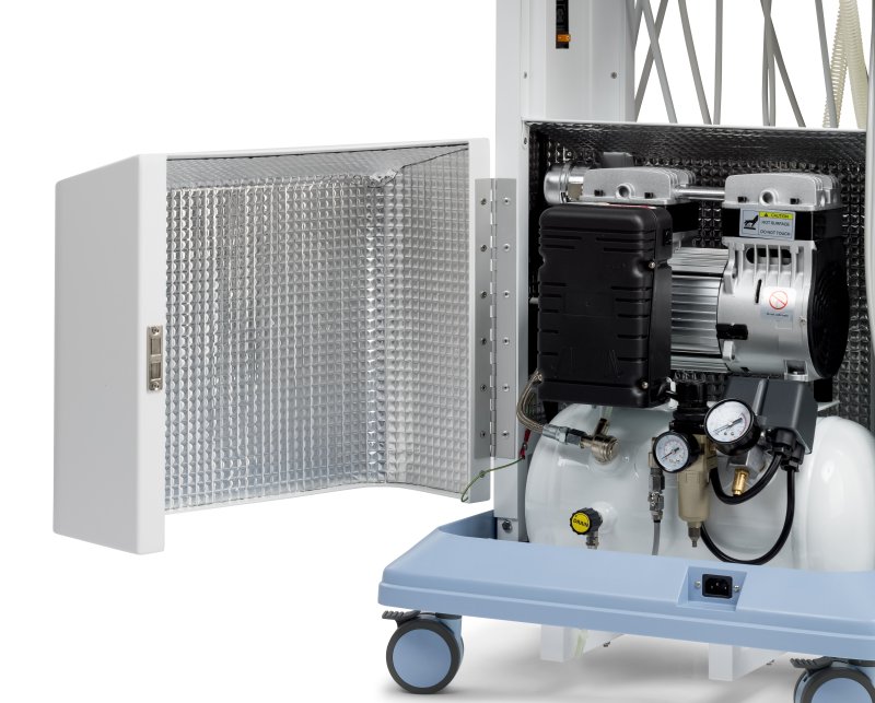 *Compressor- iM3 developed the first oil-free compressor fitted to a dental machine with suction. Oil-free technology eliminates the risk of oil contaminants entering the air supply of the dental machine. It also greatly reduces the maintenance regime.