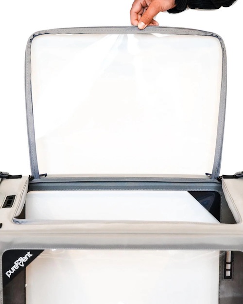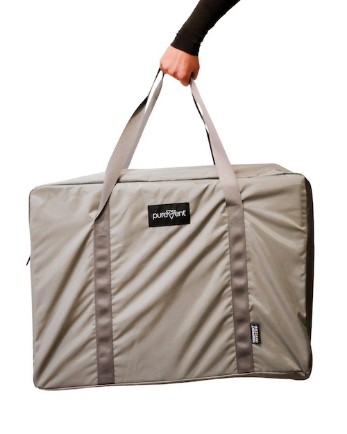 PawPrint Oxygen (O2) therapy chamber.  Perfect for temporary or short term O2 therapy, compact flat design assembls in minuets, supplied with carry bag for easy transport or storage.  Comfort mat included plus scratch resistant clear side panels allows for easy patient monitoring, built in vents ensures adequate heat, humidiity and CO2 control.  Compatible with any O2 supply source (O2 concentrator or cylinder flow meter), O2 therapy line included plus venturi adapters to adjust O2 purity.  Available in 2 sizes, up to 15Kg (Medium) and over 15Kg (Large), weighs only 4 Kg.