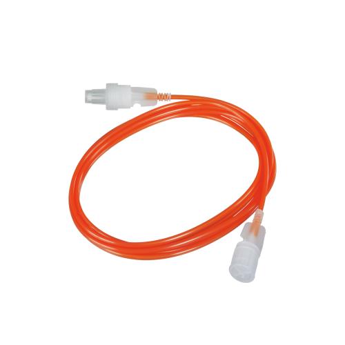Extension Line for IV administration equipped with a translucent orange UV-protected tube for the administration to light-sensitive drugs, compatible with syringe pumps.