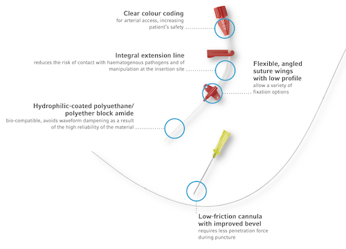 • Integral extension line reduces the risk of contact with haematogenous pathogens and of manipulation at the insertion site